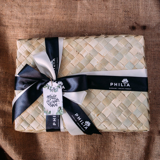 This box also supports our local artisan communities who are weavers of pandan (Tampipi and Bayong) in the province of Laguna, Abaca fiber weavers (Sinamay and Abaca) of Albay province, rice, and corn farmers for our natural box fillers in Rizal province. Flower farmers from the Mountain province and their florists at the popular Dangwa and other small businesses to give you the best gifts in a box.