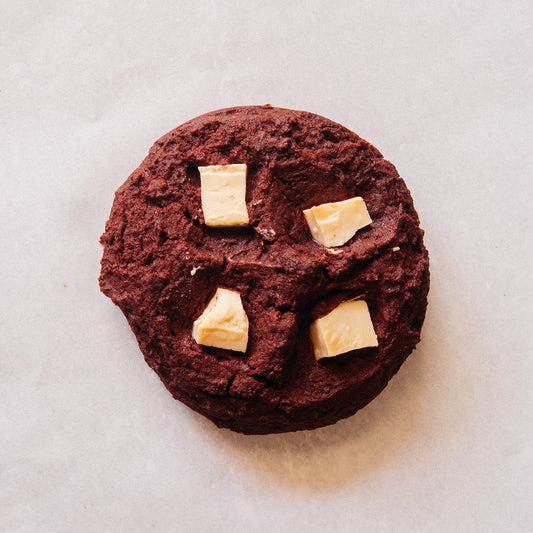 - Red Velvet – A soft, velvety cookie with a hint of cocoa and creamy white chocolate chips.