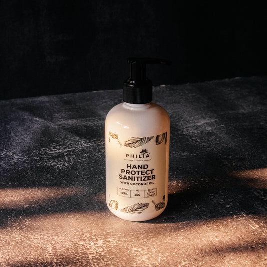 Hand Protect Sanitizer with Coconut Oil – Keeps your hands clean and refreshed while locking in moisture. No dryness, just protection with care.