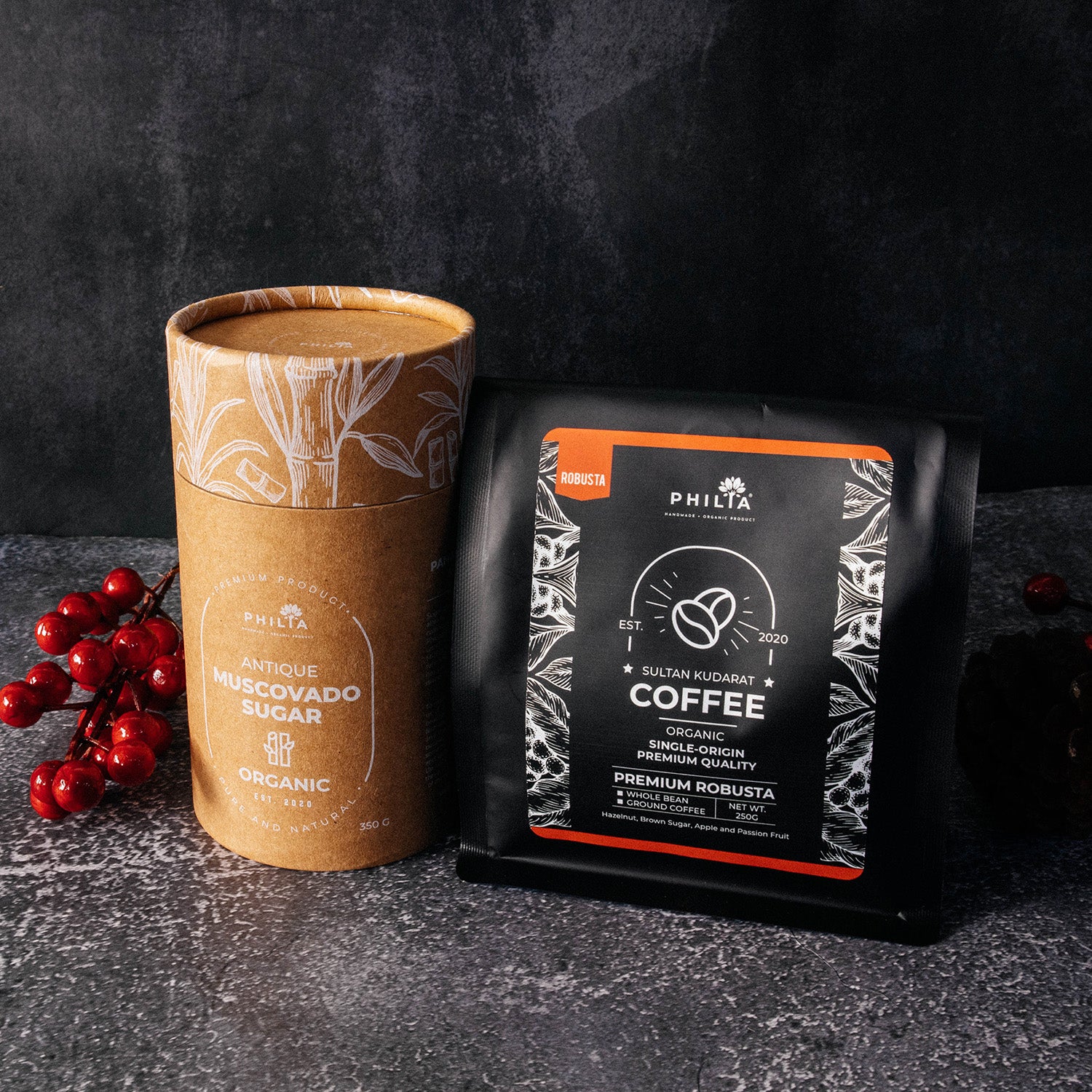 A specially curated gift set that combines the PUREness of our Sultan Kudarat Traditional Tablea and Antique's artisanal SWEETener, Muscovado sugar or Indulge in a very flavorful drink that pairs your favorite Single-Origin Organic Coffee of Robusta with our hand-processed sweetener of Artisanal Muscovado Sugar. .