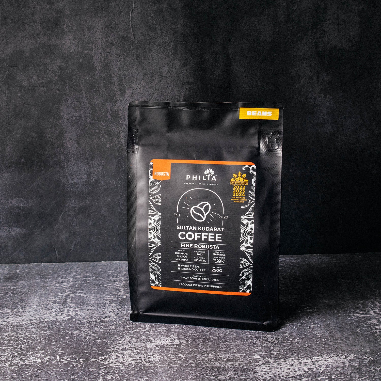 Sultan Kudarat Fine Robusta is from the shade-grown coffee beans grown by the Manobo, Teduray (both indigenous communities) and our local dedicated coffee farmer-partner and young entrepreneur Rey John Basco. These organic coffee trees thrive in a community farm at the mountain range of Daguma particularly at Barangay Kulaman and Kuden at Senator Ninoy Aquino at the province of Sultan Kudarat, Philippines at a mountain elevation of at 900-1200masl., giving it toast, berries, spice, and raisin.